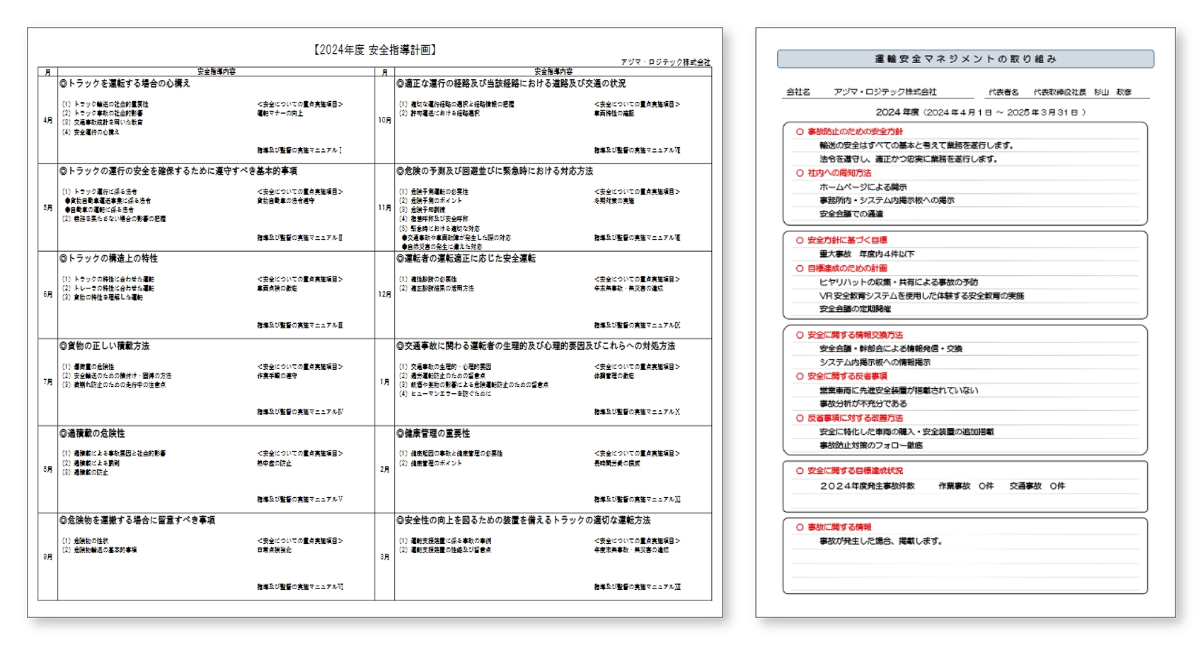 2024年度安全衛生活動計画と運輸安全マネジメントの取り組み