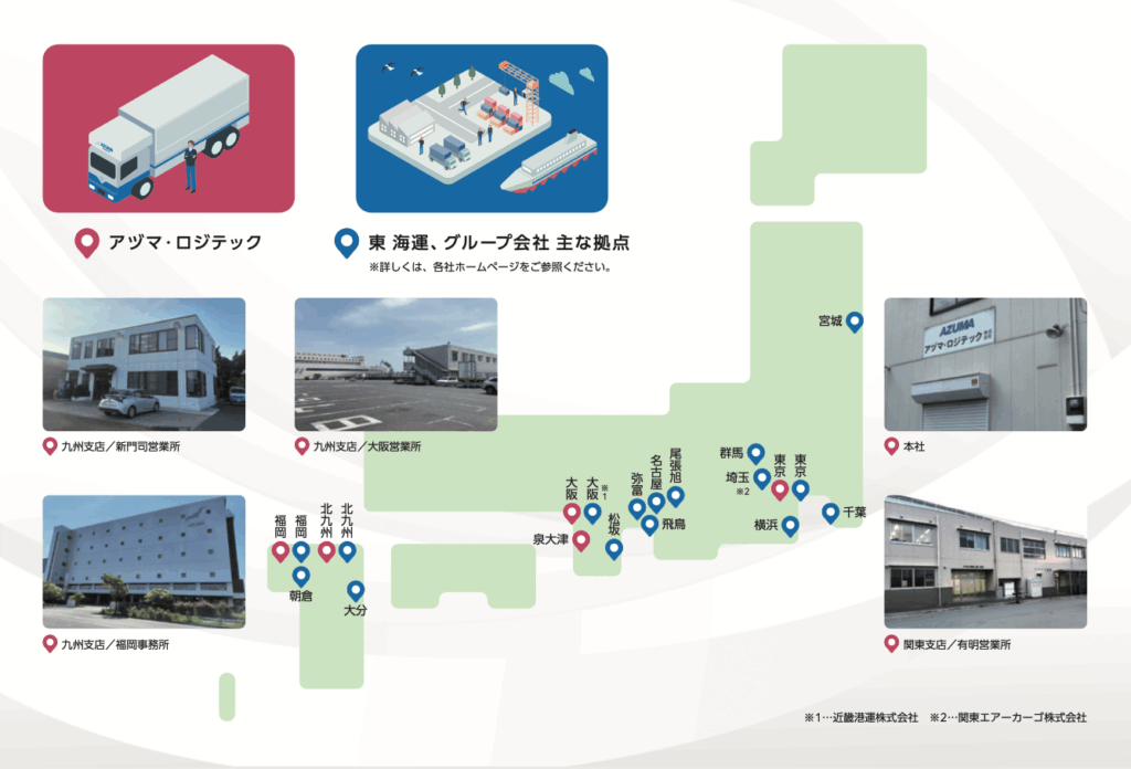 充実したアヅマ・グループの物流拠点と国内フェリーネットワークによる